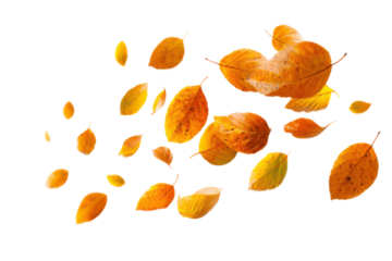 Autumn leaves falling nature scene aesthetic. Isolated on transparent background, png.