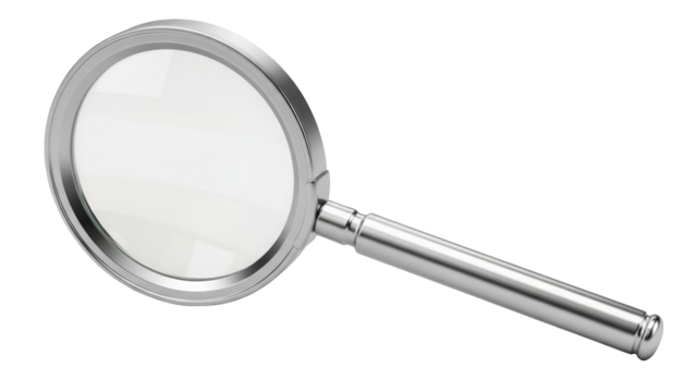 Black magnifying glass PNG isolated on transparent background, search tool for investigation and close inspection, optical instrument
