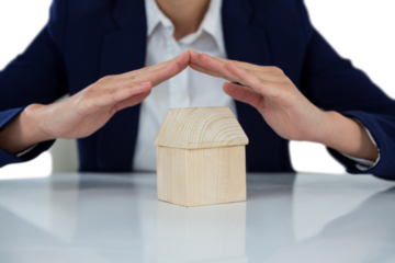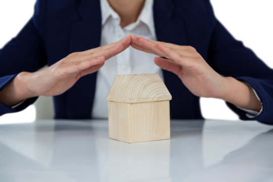 insurer protecting a house by his hands