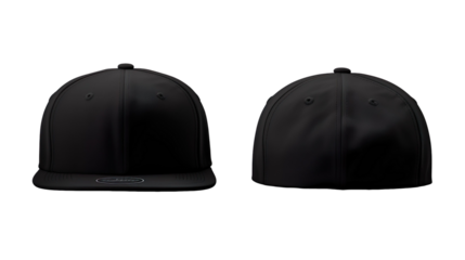 Black classic Snapback front and back in pure black without logo on transparent background