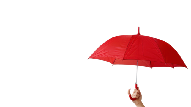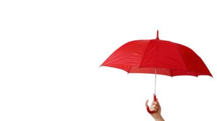 Hand holding red umbrella on transparent background