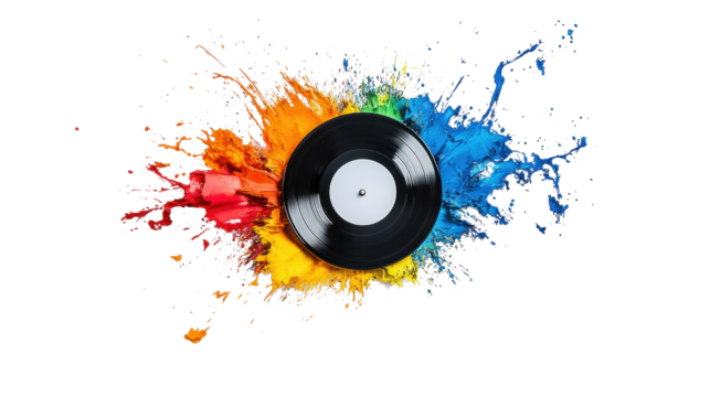 Illustration of colorful paint splashing from blue jar on transparent background, representing creativity, art, and design