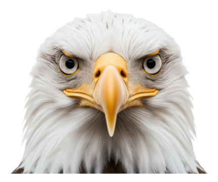 Close-up of a majestic bald eagle with intense gaze and sharp beak, cut out