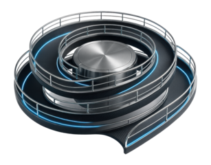 Turbine interchange featuring spiral ramps and central circular core