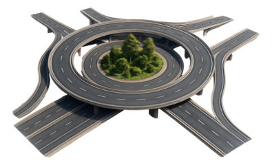 Aerial view of a complex highway interchange isolated on transparent background