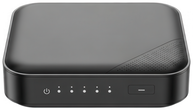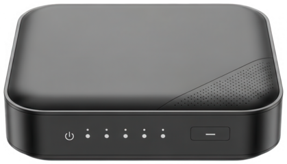 Network hubs connected via Ethernet cable isolated on transparent backdrop.