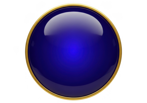Glossy blue circle with gold border isolated on transparent background for web design and user interface elements