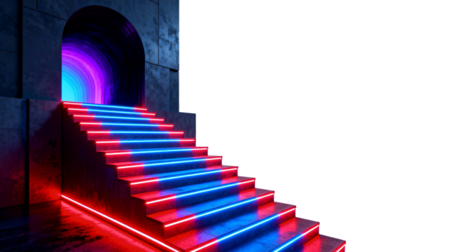 Front view of a clean white staircase, isolated on transparent background. Ideal for minimal architecture, progress concepts, and business or presentation visuals.