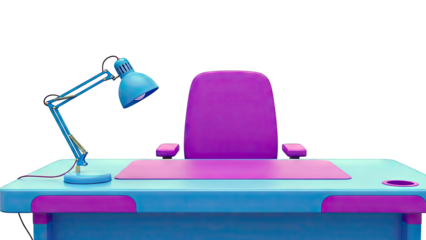 Blue and Purple Desk and Chair with Desk Lamp