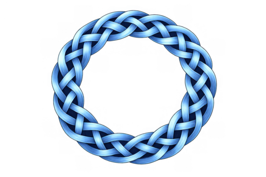 Blue celtic knot circle pattern forming an interlaced braided frame, symbolizing endless connection and eternity on transparent background
