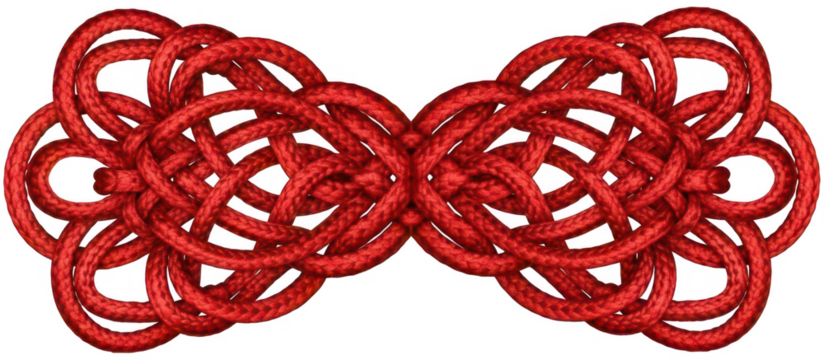 Intricate red chinese knot design with interwoven loops forming an elegant pattern