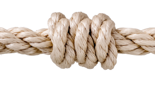 Close-Up of a Strong Natural Fiber Rope Knot Isolated on White Background