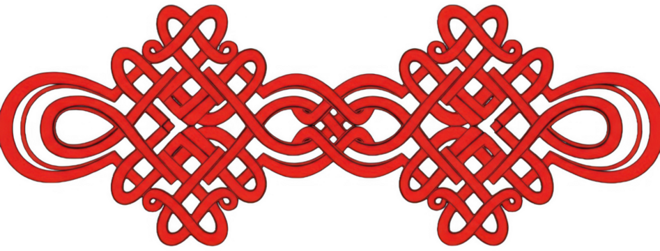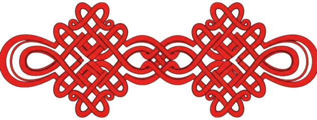 Elongated double Chinese good luck knot pattern with flowing interwoven red ropes