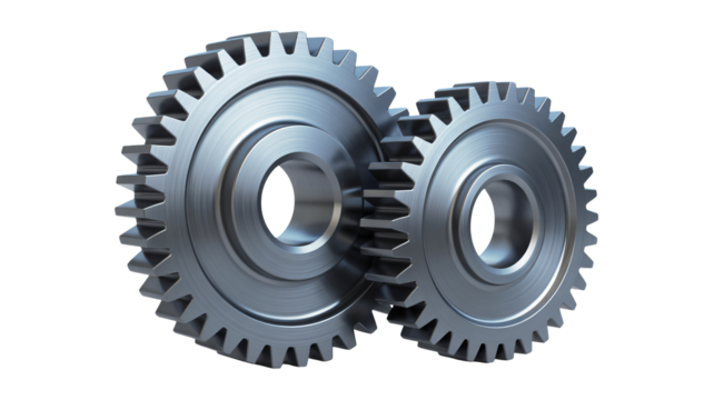 Two connected metal gears interlocked teamwork, engineering, and productivity concept PNG.