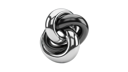Interlocked chrome rings isolated on transparent background