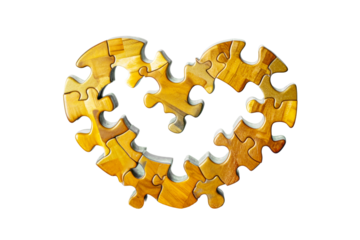 Heart shaped puzzle pieces showcasing vibrant colors and textures on a transparent background, cut out