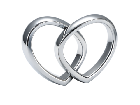 Interlocking silver wedding rings in modern minimalist style with bright studio lighting on white background for jewelry advertisement