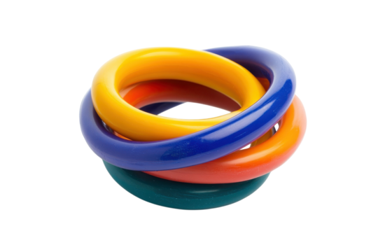 3D composition of colorful interlocking plastic shapes on a transparent background