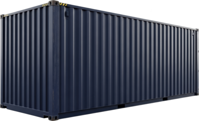 Large blue corrugated shipping container isolated on black cargo container transparent background