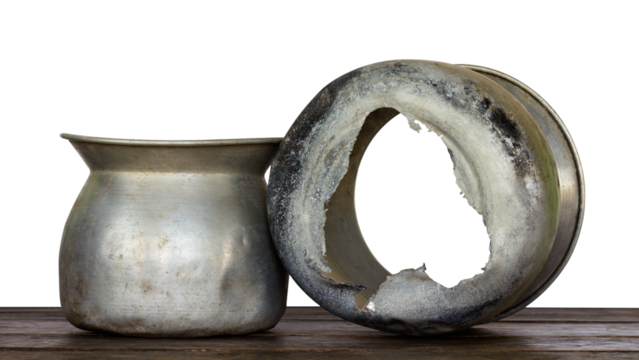 Isolate steaming pot rice made from aluminum, which is tearing a large hole because of heat for a long time.