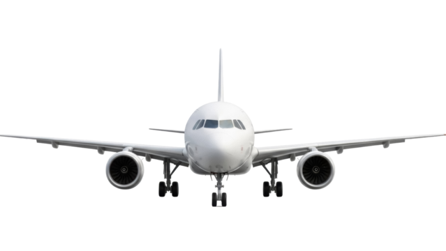 Flying plane with connected icons on transparent background