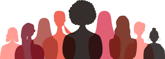 Women of different ethnicities together. Transparent background.