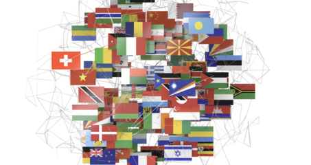 Diverse global flags decorative on transparent background