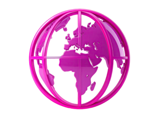Magenta globe, outlined in bright pink, rotates on a dark background