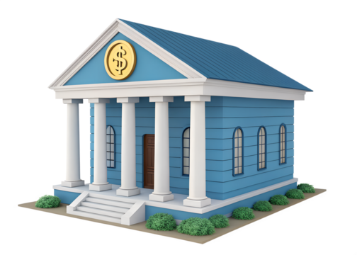 Transparent bank and coin illustration on financial background