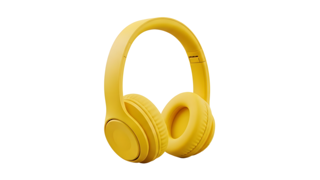 High-quality minimal 3D product render of modern yellow wireless over-ear headphones isolated on a clean white background. Soft shadows enhance realism while keeping a premium minimal aesthetic. Ideal