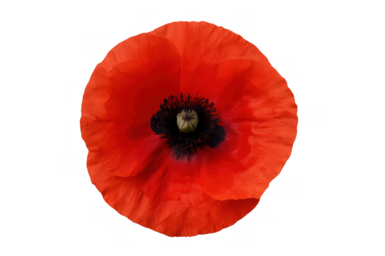 Red poppy flower representing remembrance, isolated on a transparent background for various design projects