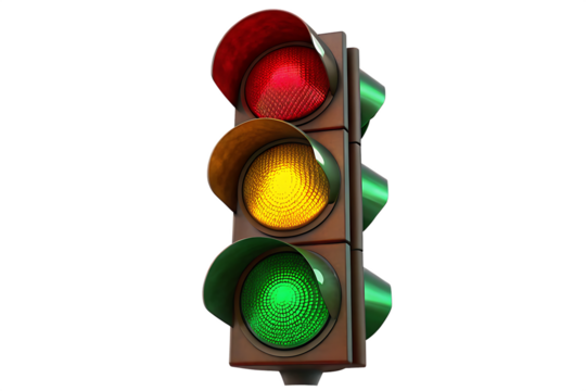 Traffic Light Signals: A close-up, vibrant depiction of a traffic light set against a clean backdrop, the classic signal device. Highlighting the essential symbols of modern roadways.