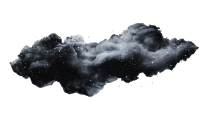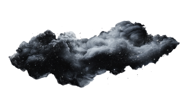 Dark interstellar cloud formation with sparkling stars on transparent background