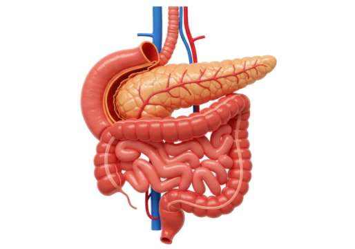 Isolated Medically Accurate 3D View of the Pancreas and Intestines