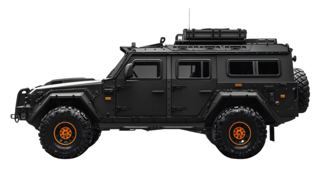 Armored Vehicle: This impressive armored vehicle, presented in a sleek and intimidating dark theme, exudes a sense of rugged strength and technological sophistication.