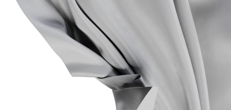 Close-up of silver textile with intricate weave, showing folds and light reflections. Perfect for fashion, design, and t