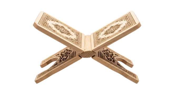 Ornate wooden book stand with intricate geometric patterns on black bookstand, Isolated On Png Transparent Background
