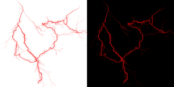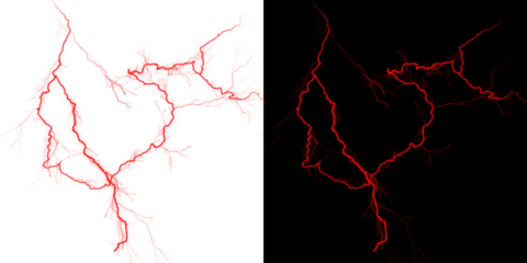 Red lightning bolt on white and black backgrounds side by side isolated on transparent background
