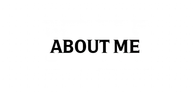 Text "About Me" in a glowing, multicolored, pixelated font on a black background