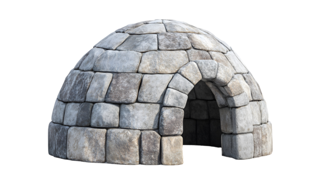 Traditional snow igloo, an inuit winter shelter and arctic home, featuring an arch entrance on transparent background