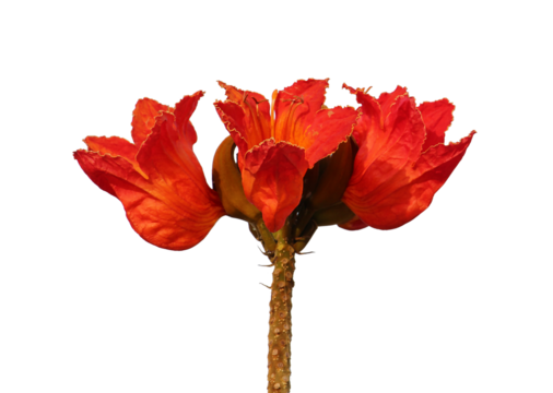Blossom of the African tulip tree (Spathodea campanulata) isolated on transparent background