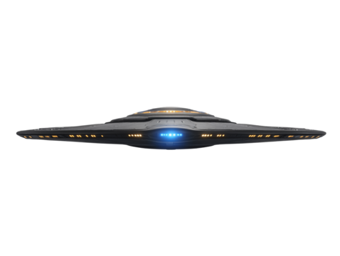 UFO, alien spaceship isolated on transparent background, Close up of flying saucer, Alien abduction concept