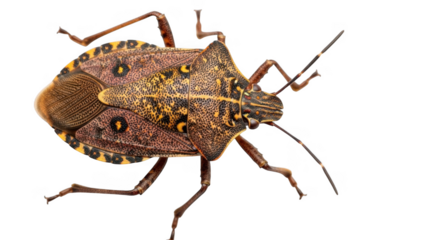 Brown marmorated stink bug isolated on transparent background close up