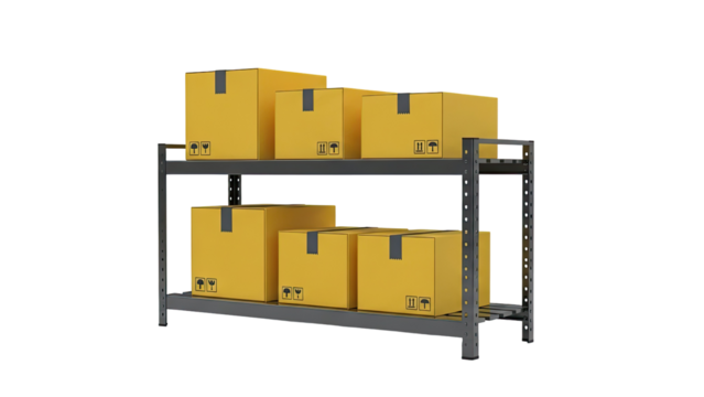 Warehouse Shelving Unit with Cardboard Boxes
