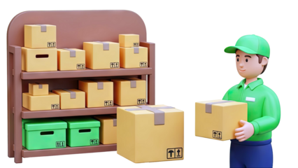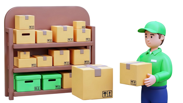 Delivery Person with Packages and Storage Shelf