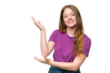 Young pretty woman over isolated background extending hands to the side for inviting to come
