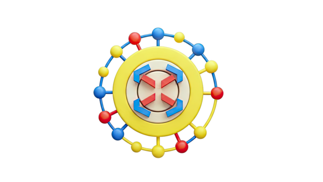 3D Rendering of Arrows Converging in a Blue Circle Icon