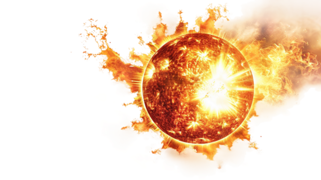 Solar flare, an explosive release of solar energy causing temporary disruptions in satellite and radio signals isolated on transparent background