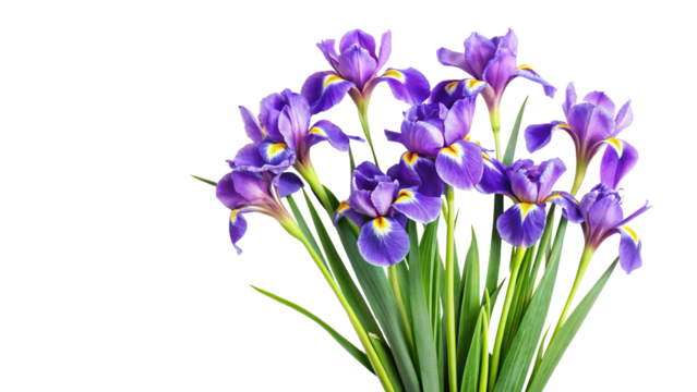 Captivating Arrangement of Purple Iris Flowers on a Clean White Background