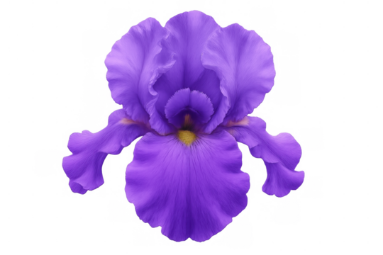 Purple iris flower blooming, revealing detailed petal texture, transparent background highlighting botanical elegance
